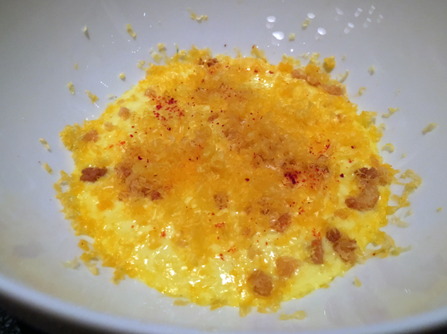 There was at least a practical reason for the bed of ice sitting underneath the final amuse bouche – it kept the crisp candy sphere, filled with a zesty, citrusy liquid, refreshingly cool. Even so, this amuse bouche threesome felt like a joke with a punch line that I’m not privy to.