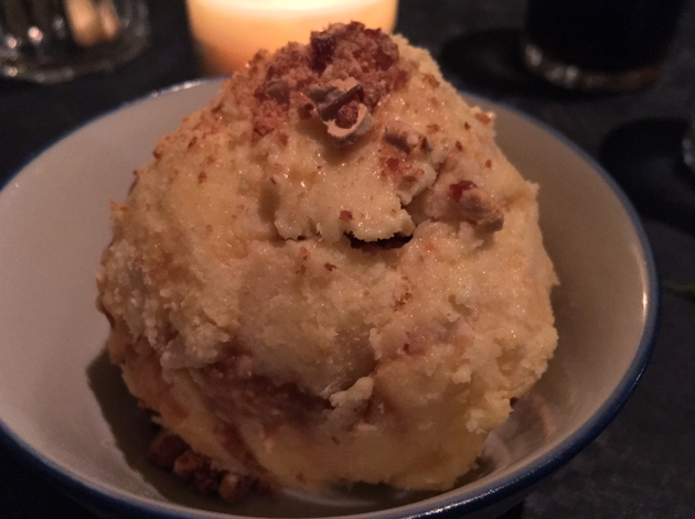 The English-style, apple- and custard-filled doughnut was much the same as it was before, but with a touch more sugary sweetness and a little more herbiness in the custard. You’re still better off with the ice cream, in other words.