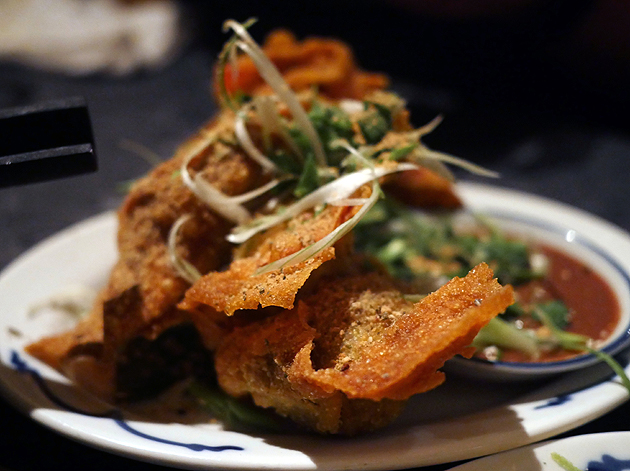 Deep-fried wontons were unexpectedly sophisticated. The crisp, oil-free and almost weightless pastry contained a just-cooked ball of moist, meaty, ginger-flecked pork at its core. Each wonton was remarkably light, an unexpected feat for a deep-fried dish. The perfectly formed morsel of pork wouldn’t be out of place in a steamed dim sum dumpling. Masterful.