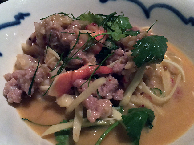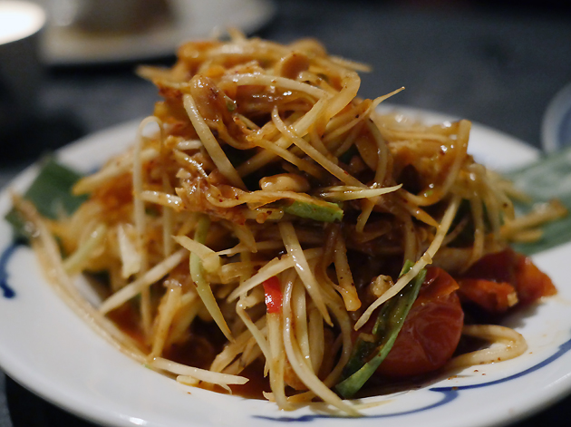 After all that relatively heavy meatiness and deep-fried batter, the som tam salad provided a welcome intermission with its refreshing strips of green papaya, umami zest and tingly chilli-derived warmth.