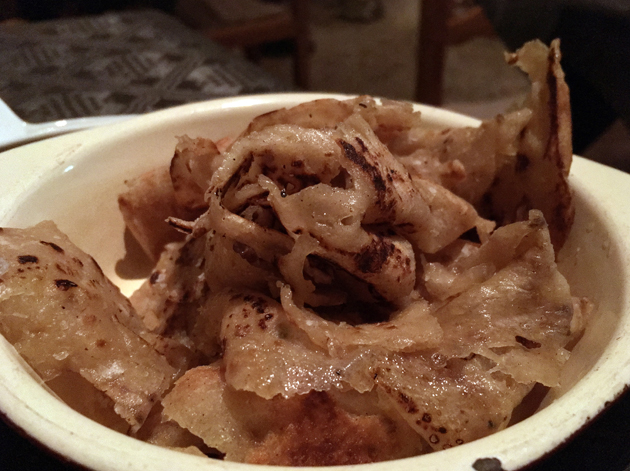 The turmeric roti, while far from bad, wasn’t quite as worthy of adulation and song as it once was. A little thicker and doughier than before, it didn’t quite have the same supple, tearable quality to it or the same ineffable lightness. Happy Buddha even mistook the once unmistakable taste of turmeric for bone marrow.