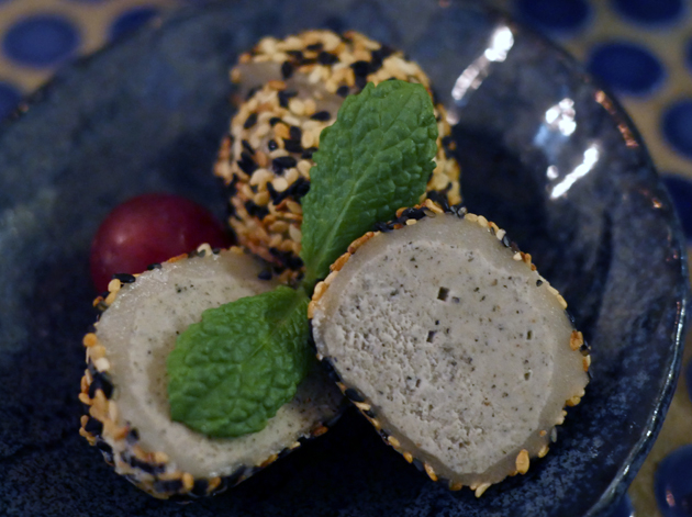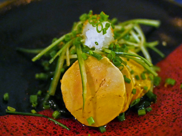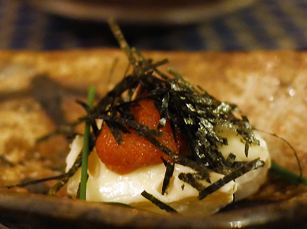 Jugemu has a couple of dishes consisting of bizarrely odd pairings, at least from a Western Euro-American perspective. Sheets of nori came with light and airy dollops of cream cheese, a creamy umami combo that worked reasonably well despite its freakish appearance.