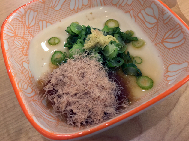 ‘Tofu custard’ is basically Kryptonite if you’re a culinary conservative. Tofu! Yuck! Only hippies eat that! Tofu custard! Ewwww! High falutin’ cheffy chuff! Give me some honest meat and two veg! The reality was much more mundane and wasn’t as norm-threateningly bizarre as one might think, but it was also not nearly as good as I would’ve hoped. The smooth and refreshingly cool ‘custard’, akin to a savoury creme brulee without the crackling, served as a neutral-tasting conveyor for ginger, spring onions and the caramelisation-like sweet meatiness of the Chinese-style pork floss. Although not nearly as good as the superlative tofu dishes of Kyoto’s Sagatoufine, it was still perfectly enjoyable.