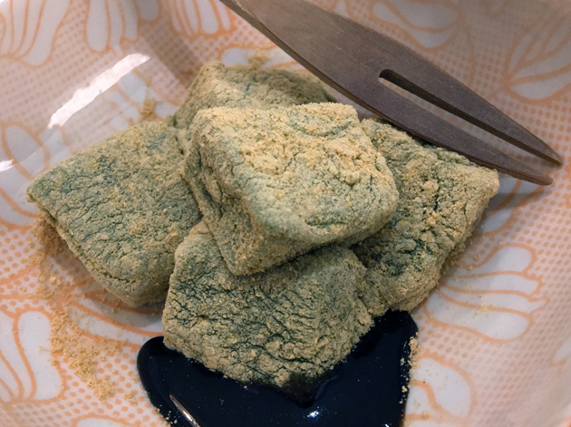 Although decent enough, the matcha ice cream wasn’t the dessert I was most looking forward to at Machi-ya. Warabimochi is rarely seen outside of Japan. When it is, this dessert – made of gelatinous, processed starch and dusted in toasted soya flour – tends to be the preserve of haute cuisine kaiseki and kappo ryori restaurants. Machi-ya’s version wasn’t quite as gummy and stridently nutty as the version I had in Kyoto. It was much softer and goopier – almost liquid-like in places – and tasted much sweeter, with an almost tea-like tannin-ish quality. None of this meant Machi-ya’s warabimochi was bad – far from it. If anything, this version will likely prove far more palatable to most Londoners than the comparatively esoteric version I had at Sagatoufuine in Kyoto.