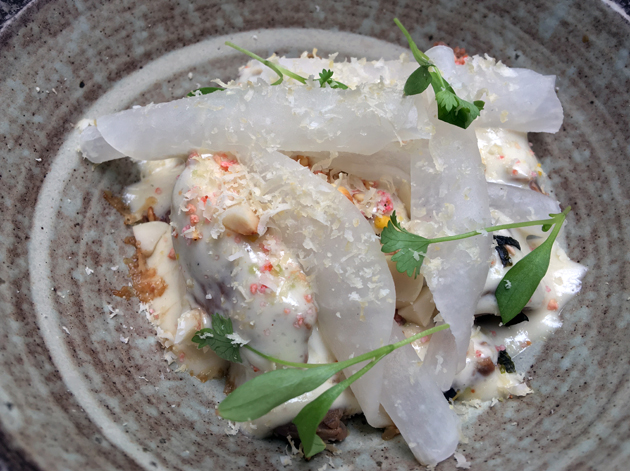 Pork shoulder and belly were almost lardo-like in their soft and pliable fattiness. The gentle porkiness of the swine flesh received an unexpected boost from the sweet, tart and silky soft shavings of radish. The versatility of pork never ceases to amaze.