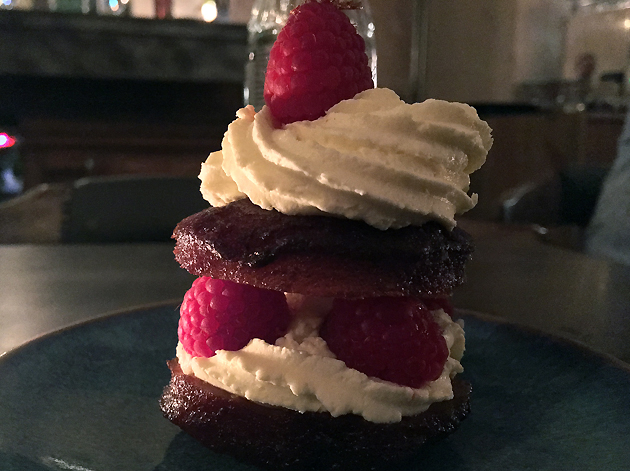 Interestingly, all the desserts are listed on the Gul side of the menu (online, at least). While billed as a gulab jamun, what arrived took the form of a mildly exotic sponge sandwich. The milk-based, rum-soaked dough made up the ‘bread’, but was a bit too dense and stodgy for my liking. It wasn’t sweet, airy or light enough. The cream inside had a familiar taste that I couldn’t quite place, while the raspberries left much to be desired. Overall, meh.