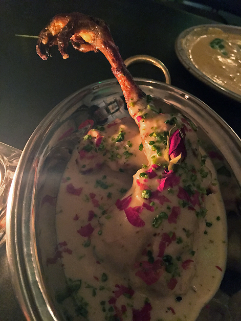 Although the sauce gracing the three bird korma wasn’t as sickly sweet as the worst korma sauces, it was still lacking. The only thing worse than the creamy, dull and somewhat cloying sauce was the meat itself. The terrine-style arrangement of poultry was strikingly bad. It was far too dry as it transitioned from one bland smooth-textured coil of unidentifiable bird to another bland, grainy textured coil of unidentifiable bird. Ugh. No. Just no.