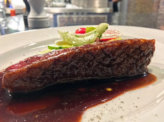 Up until this point, I’ve only covered the tapas-style dishes at Sabor’s downstairs counter. While I could devote even more verbiage to its offerings or to the shorter, separate jamon-dominated menu at the bar, no review of Sabor would be complete without mentioning the upstairs dining room. It not only feels different with semi-communal tables instead of a counter around an open kitchen, the menu is focussed around Segovian-style suckling pig with a few other dishes playing supporting roles.
