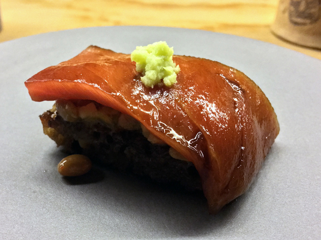 It takes a certain kind of talent to not only make aged tuna belly uninviting and tasteless, but to do the same to natto and then pair them together on stodgy sourdough to drearily unspectacular effect. If it wasn’t for the creamy sweet warmth of the wasabi, I’d have been tempted to tip this out of a window when no one was looking.