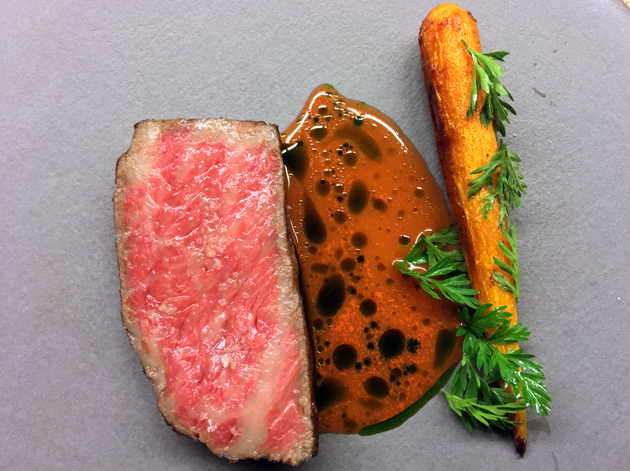 The Euro Hedgie waxed lyrical about the smoked Kobe beef. Apart from a brief hint of butteriness though, I found the bovine strip to be a languid, joyless experience. The lean and characterless beef was livened up by the yeasty, booze-soaked carrot and the sauce which was a dead ringer for carrot juice, but all that was too little, too late.