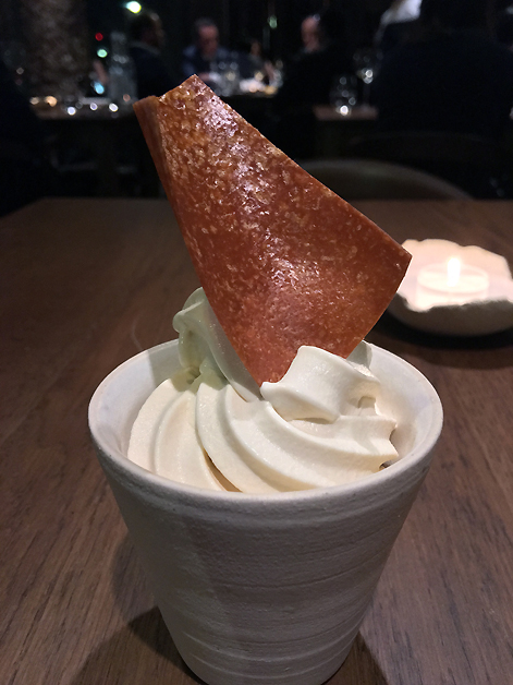Eggy creamy custard was whippy yet tinged with the smokiness of Earl Grey as well hints of saffron and a sweetness I couldn’t quite place. Despite the unnecessary if artfully crisp curls of apple, this delightful custard was eminently light yet satisfying.
