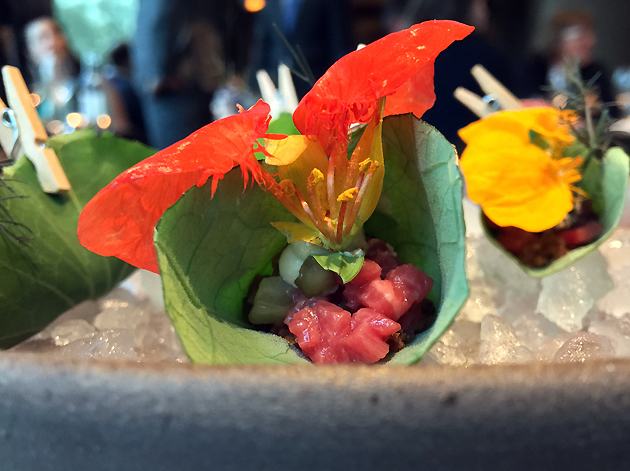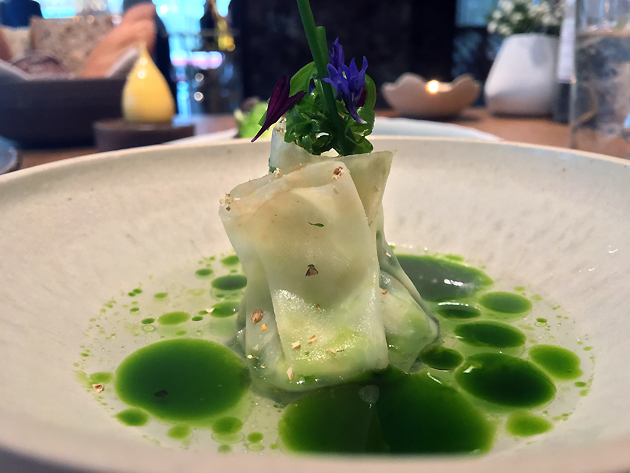 Steak tartare arrived ssam-style, each wrap held together by miniature clothes pegs – almost as if Ena Sharples had given it the once over at the pass. Although far from bad, this is steak tartare designed for Instagram – it looked better than it tasted. The fruity sweetness of the floral garnishes was pleasing, but also bold enough to push whatever qualities the raw beef might have had into obscurity. This was one of those rare meat dishes that could easily have been done just as well with seitan, tempeh or an aptly chosen tofu.