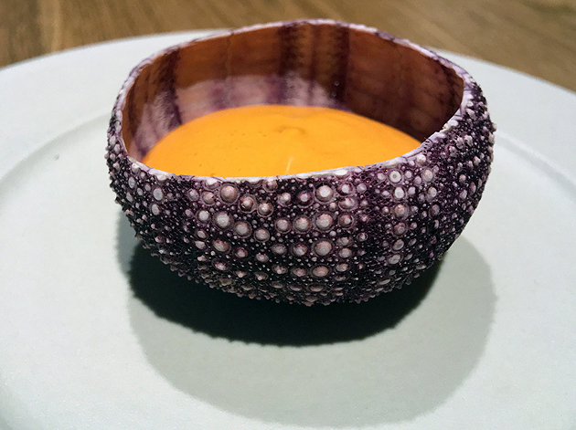 There are restaurants where it’s clear that compromises have been made. Whether due to money, time or stress, or some unfortunate combination of all three, a restaurant’s premises, location or menu sometimes aren’t quite what its proprietor and chef would have liked them to be. I’d be very surprised indeed if any compromises have been made at Hide, the successor to the now-closed Dabbous in Fitzrovia. From the curvaceously Gaudi-esque staircase to the floor-to-ceiling windows overlooking Green Park, Hide looks like a million bucks. There are plenty of neat little touches to its interior, from the handsome fittings in the bathrooms to the USB power banks tucked away in drawers underneath every table.