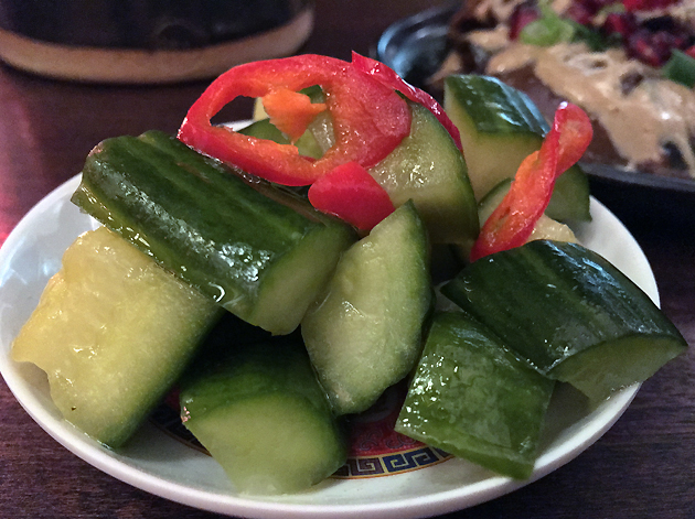 Taiwan has its own pickling tradition, not unlike that of neighbouring Japan. The smashed cucumbers could have been bolder and the accompanying chillies more potent, but I was still a fan of their light briney vinegariness.