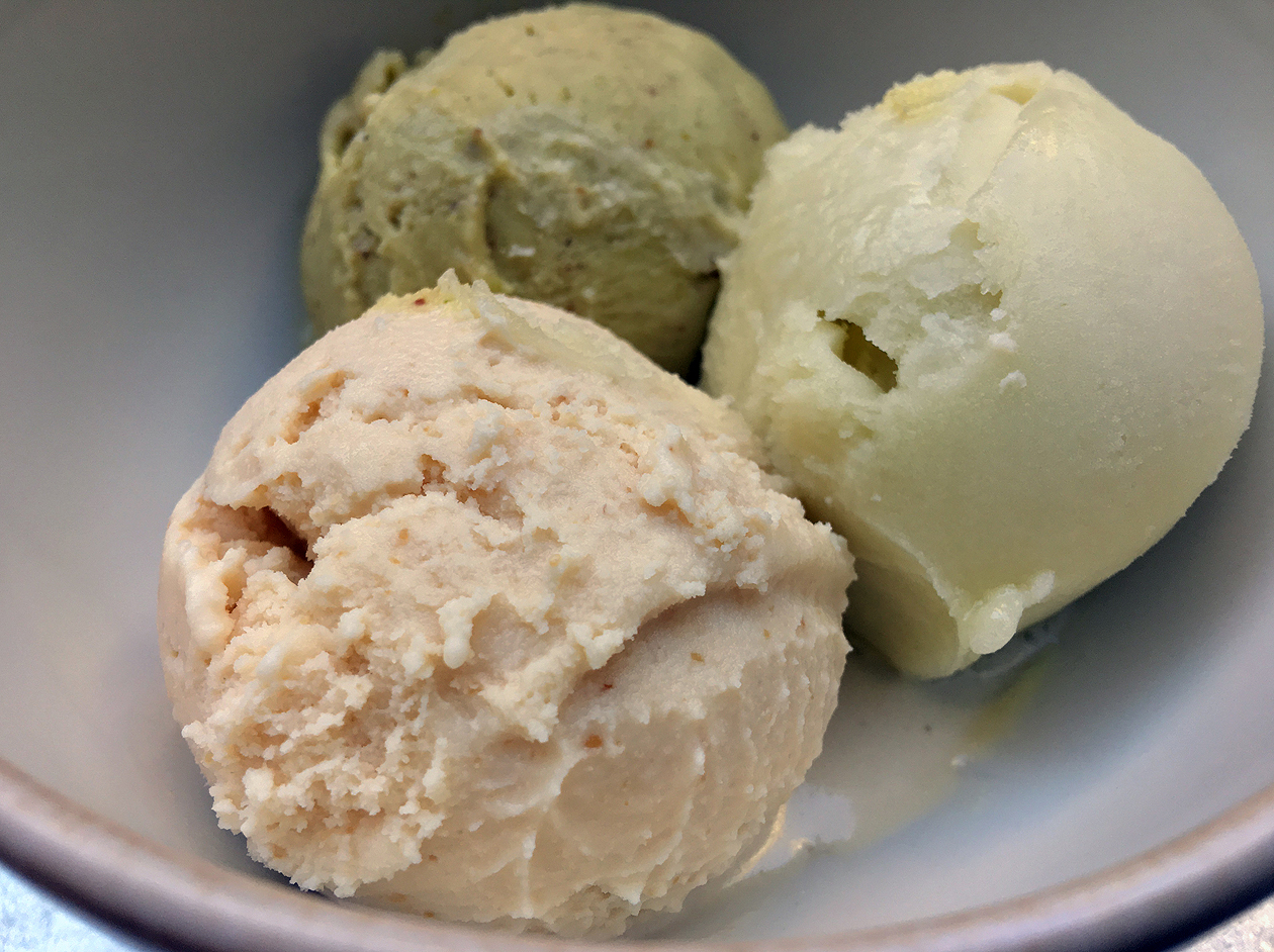 Temper’s ice creams and sorbets were a mixed bag. Almost all of them were smooth and free from crunchy ice crystals, which is something. The pistachio was a weirdly unpleasant creation with an off-putting chalkiness to it. Peanut butter was more like halva and thus far from unpleasant – it merely failed to capture the viscous gooeyness which makes peanut butter so joyful. Apple sorbet was an unqualified success – true to the fruit with its sweetness and crisp, sharp refreshment.