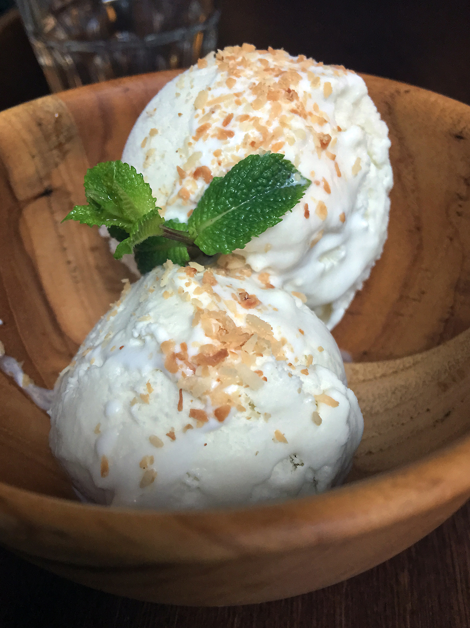 The clumpy texture and crunchy ice crystals of the coconut ice cream was deeply unimpressive. The tame coconut flavour was boosted by the toasted, lightly caramelised flakes of extant coconut, but that wasn’t enough in the end to rescue this flawed dessert.