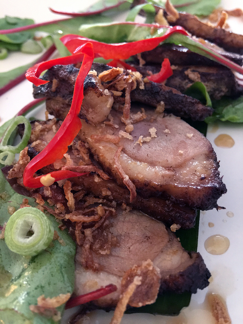 Given the addictiveness of the fatty minced pork, the relative dryness of the pork larb melded into meatballs was something of a surprise. While the meatballs weren’t a complete loss with a coarse and dense texture, it was the salad accompanying them that really lit up my eyes. Sharp red onions and crisp coriander were the perfect mechanism for delivering the umami tingle of fish sauce into my gaping maw.