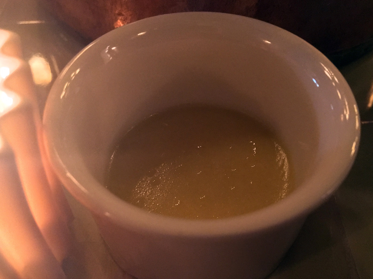 Salted caramel panna cotta wasn’t in any way salty, but it most certainly packed the unmistakable sweetness of caramel. The denseness and thickness of the panna cotta was also remarkable, as if its thickening agent had been augmented with just enough salep and mastic and no more. The biscuit wafer perched on top was the perfect partner for the panna cotta. Its macadamia-like nuttiness segued seamlessly into the molasses-esque sweetness of the panna cotta, while its crunch contrasted neatly with the panna cotta’s chunky softness. A pumpkin juice curiously reminiscent of rooibos tea (at least it was in my mouth) rounded off an eminently distinguished dessert.