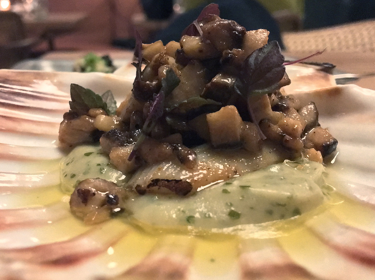 Although drawn and quartered, the sliced scallop still retained its plump meatiness. Even better was the buttery rich emulsion oozing over the scallop’s curves, its hollandaise-like charms bolstered even further by the sweet undertones of what appeared to be dill. It was so delicious, I licked the shell clean.