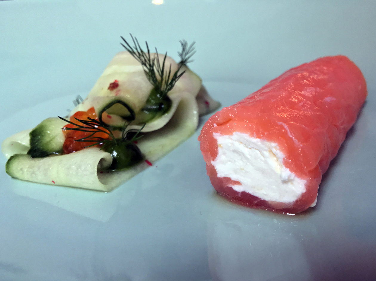 Smoked salmon was far less impressive, with the overly chilled fish wrapped around an equally frigid cream cheese. The best thing on this plate had to be the briney sweetness of the pickles paired with rich, quivering roe.