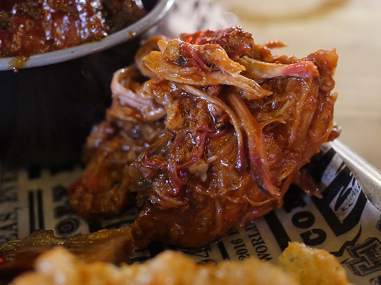 Pulled pork was far better. The moistness of the tender pig was no doubt helped along by the wet rub, its umami sweetness and vinegariness indicative of a northern Carolinas-style preparation. While perfectly enjoyable, it would’ve been even better if as much flavour had been derived from the pork itself as it had been from the wet rub.