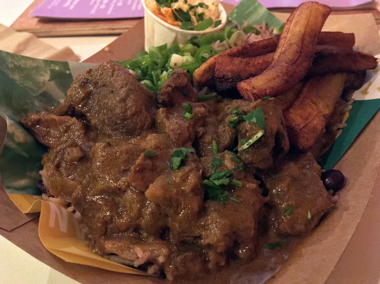 I’m both baffled and uncertain as to what makes Caribbean cuisine ‘New Age’ or not, as Mercato Metropolitano insists on branding Juici Jerk. Perhaps it’s because some of the dishes seem toned down for the lily-livered palates that still rule much of this island. The goat curry was a timid affair, but at least the meat itself was tender, while the accompanying plantains were sweet and starchy.