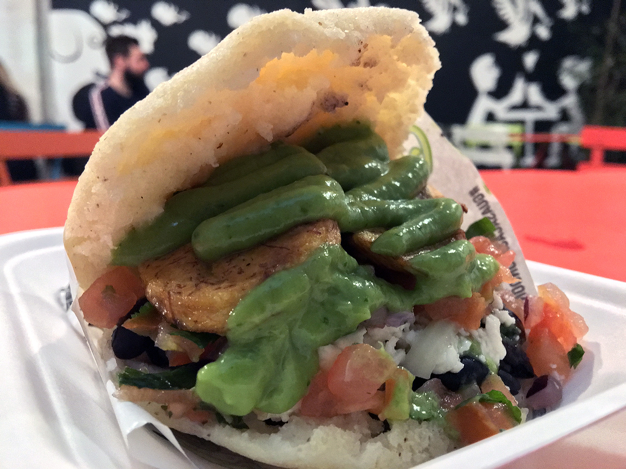 Venezuelan/Colombian-style arepas in a ‘mainstream’ street food hall is an unusual sight, especially given the almost certain whitewashing doom that awaits traders selling similar vittels at the nearby Elephant and Castle shopping centre.