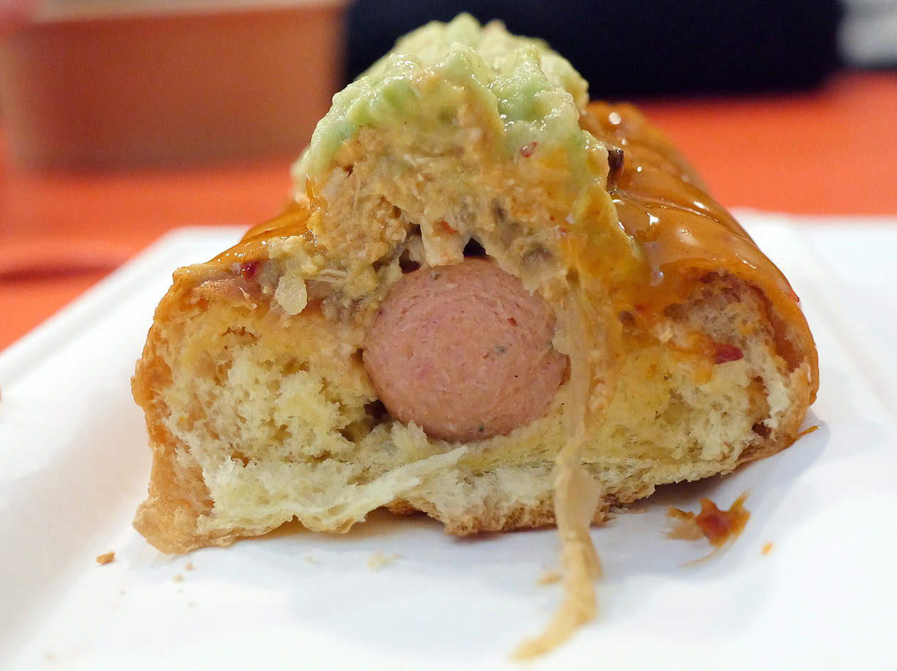 This stand also sells onigiri, but the shrimp and avocado-filled variant would’ve been better suited for pelting fascists than for human consumption. The damp, yet simultaneously hard and claggy rice was one of the most unpleasant things I’ve shoved into my mouth since my last lover’s unmentionables. Even if the shrimp and avocado hadn’t been vanishingly lilliputian in portion size, it wouldn’t have saved this clot of misery from the bin.
