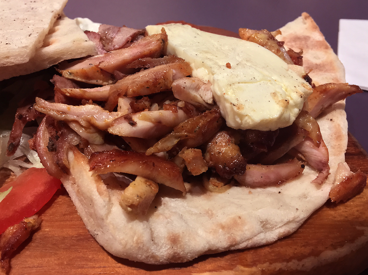 Dry, charmless chicken came wrapped in a thick, stodgy bread. The excessive amount of filler salad, hummus and tzatziki were almost a relief, if they weren’t all so utterly pedestrian.