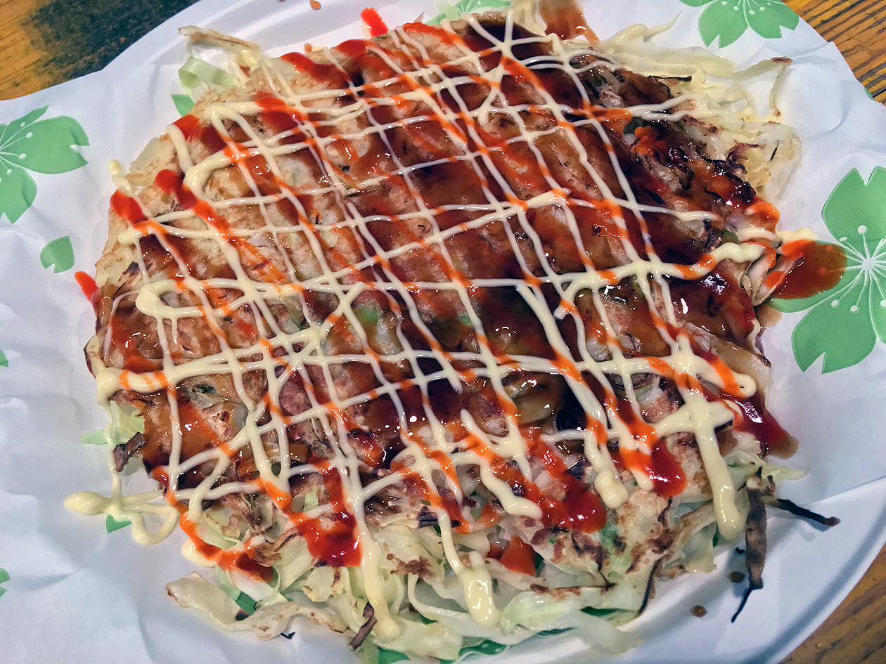 If you’re a fan of Hiroshima-style okonomiyaki, then opt for the plainest versions possible. Otherwise stay away – and under no circumstances should you attempt to ingest the onigiri.