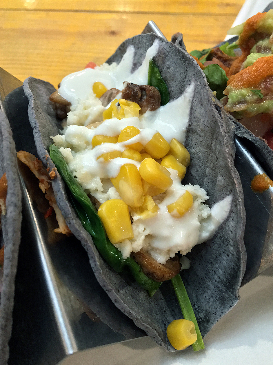 The intermittent fruity tang of the moist chicken was sadly drowned out by an overzealous application of deadening sour cream. The eponymous al pastor was a better carnivorous option. Lean yet lightly smoky with a fruity sweetness, the al pastor tacos were highly satisfying.