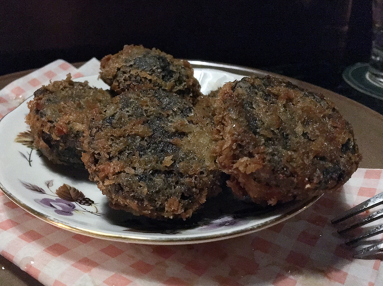 It’s not possible to have too much black pudding, so you should also order the black pudding croquettes. The term ‘croquettes’ isn’t quite right though – each batter shell was really a skimpy, feathery crisp negligee barely holding in a buxom, fulsome puck of thrusting black pudding. While some of the airy battered shells contained white rather than black pudding, it was the former that I enjoyed scoffing the most. Although the chipotle ketchup didn’t quite have the complex and layered smoky spice of the very best chipotle, it still brought a tingly heat to my already drooling, grasping lips.