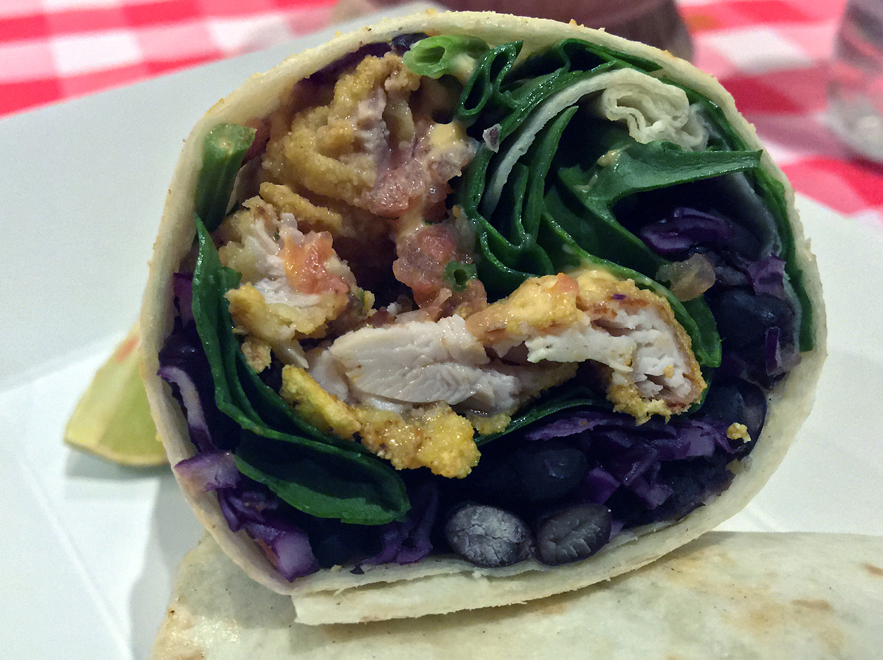 Crisp and starchy cubes of sweet potato were a fine vegetarian taco filling, their light sweetness and earthiness tantalising the tongue rather than bludgeoning it. That made the clumsy sweet potato burrito all the more baffling. The sturdy wheat tortilla was fit to burst, stuffed to the gills with thick tuber chunks. They hadn’t been tenderised enough though, so their hard bite made for a jaw-stretching exercise in cud chewing. There was a core of salty, milky feta nestled amidst all the sweet potato, but there wasn’t nearly enough of it to alleviate the gastronomic boredom.