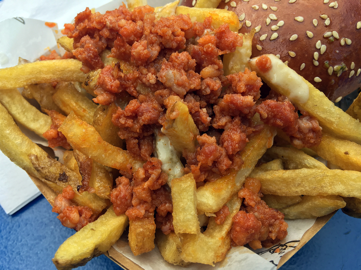 The main appeal of the fried chicken in the Chick Frito wasn’t the somewhat greasy poultry, but the batter. While not anywhere as pleasing as the fried chook from the neighbouring Mother Clucker stand, the batter ranged from malty and crunchy in some places to soft and supple in others. The peninsular touches here were a dab of modestly zingy aioli and a somewhat sweet and creamy ‘bravas’ sauce that wasn’t hugely different from bog-standard burger sauce.