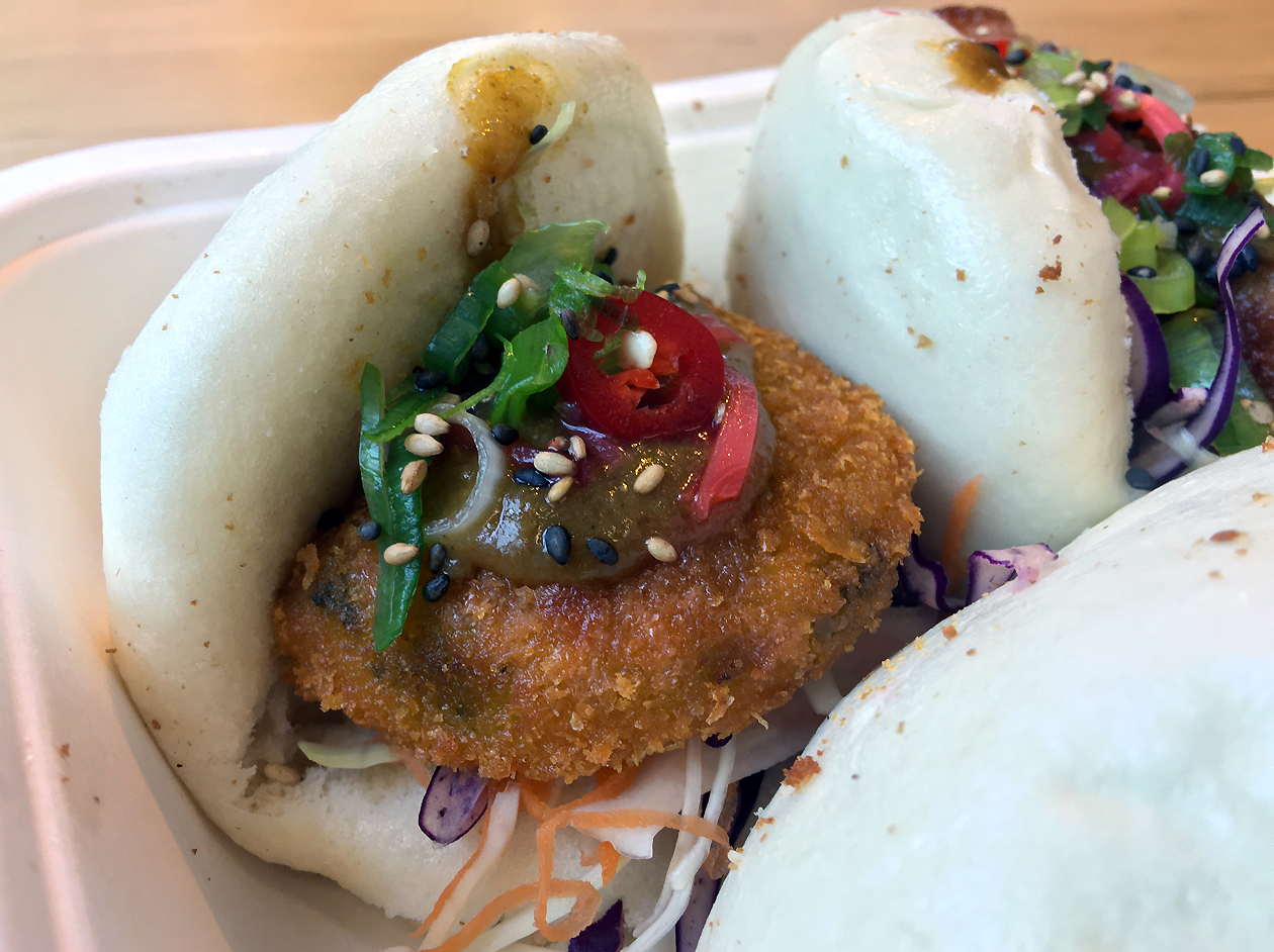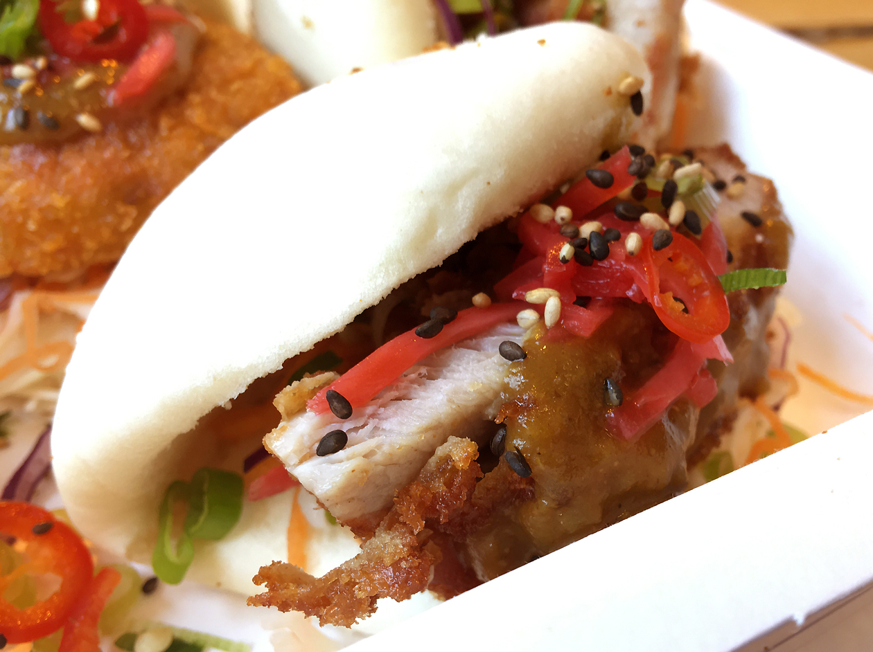 Although the poultry in the chicken katsu curry had little to say for itself, the breaded coating was at least grease-free and relatively crisp. The mild curry sauce was sweet with a peppery touch, while the rice consisted of small fluffy grains. There was little change in the fried chicken itself when having it in a gua bao instead of with rice.
