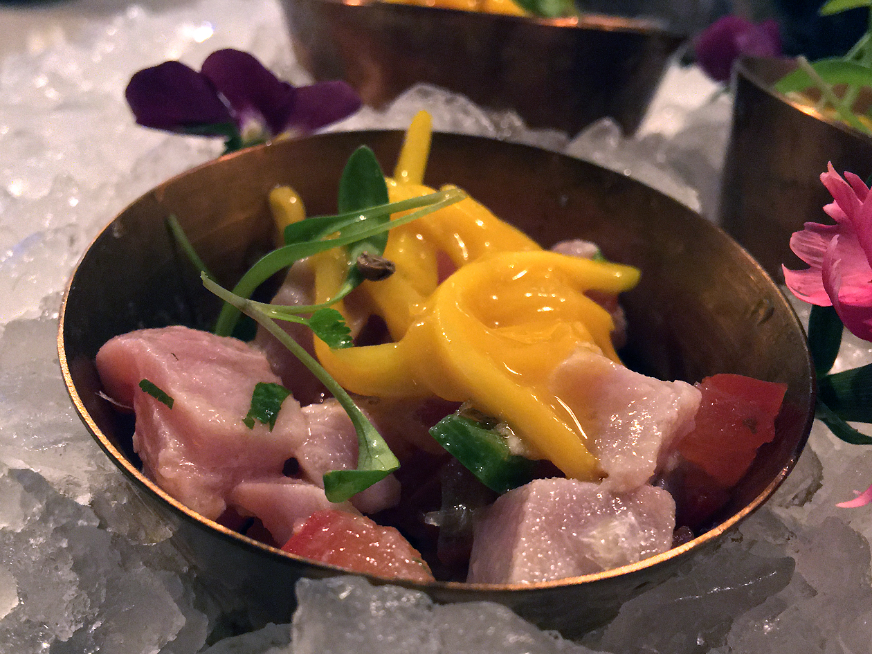 The ceviche was similarly satisfactory, but hardly remarkable. Halibut was meaty, but salmon and tuna were overly dependent on their garnishes, from sprightly and zesty tomato-based melanges to the fruity sweetness of mango.