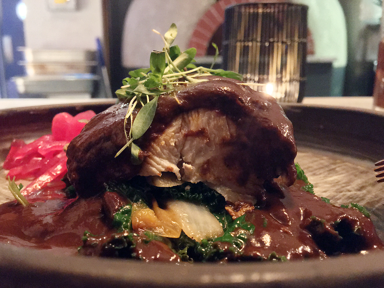 At least that wagyu pizza was enjoyable enough as long as you didn’t expect it to taste much like actual wagyu or anything like a Neapolitan pizza. That was a harder feat to ask of the chicken mole. The slices of chicken breast would’ve been bone dry, but for the mole sauce. The latter was a recognisable approximation of an Oaxcan-style mole, but still an approximation nonetheless. Its unbalanced pairing of sweetness and tartness, followed by a mild spicy heat, was a rough and ready recreation of the nuanced complexity of the very best moles. At least there were supple, bitter greens and plenty of tortillas to mask its deficiencies.