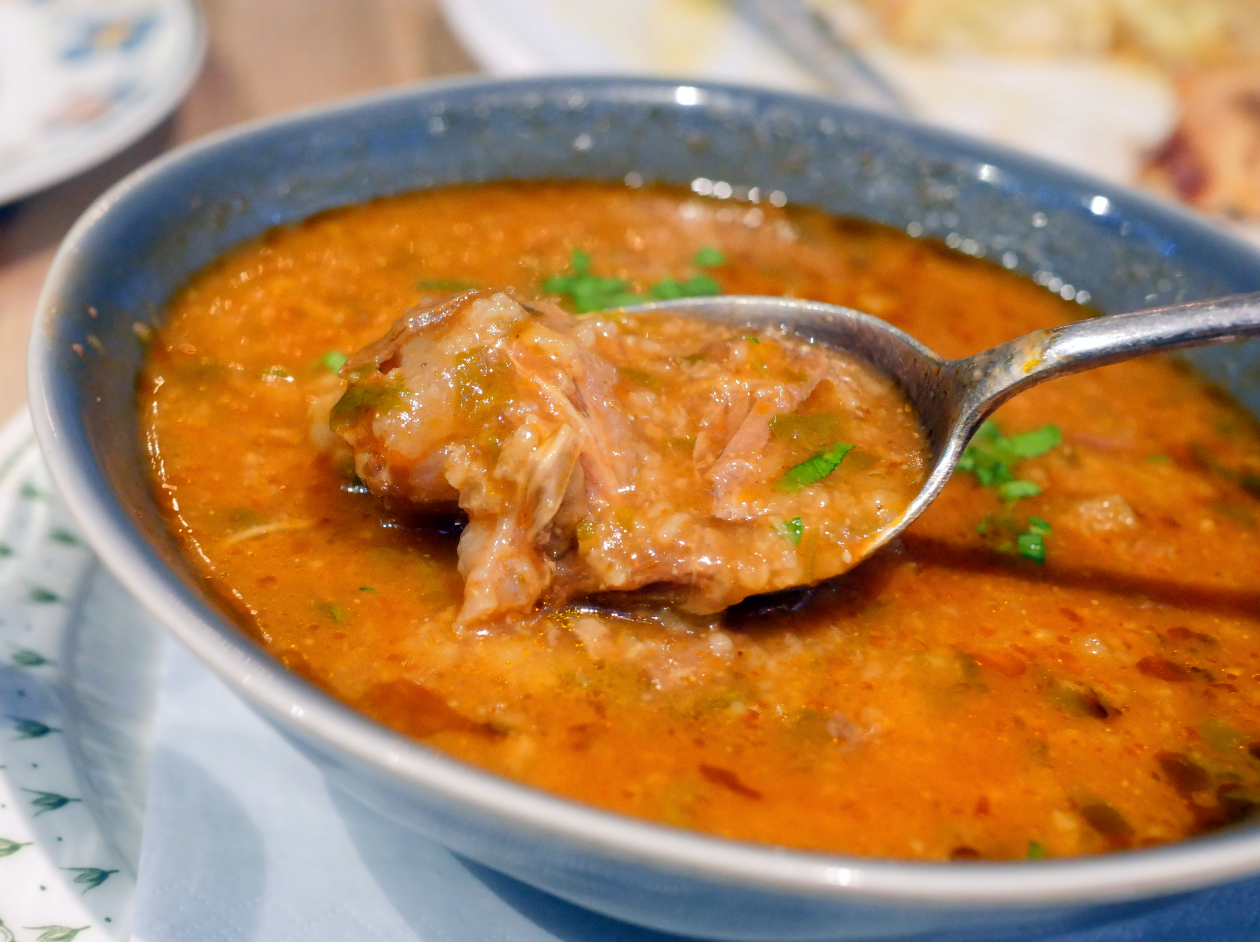 Still, there was joy to be had in dredging torn-off pieces of the khachapuri through the kharcho soup, a dish that had plenty of its own charms. The unctuously moreish broth came flecked with rice and sinewy fleshy morsels of beef akin to ox tail, while also tinged with mildly spicy hints. It was not only unexpectedly nuanced, but utterly addictive too.