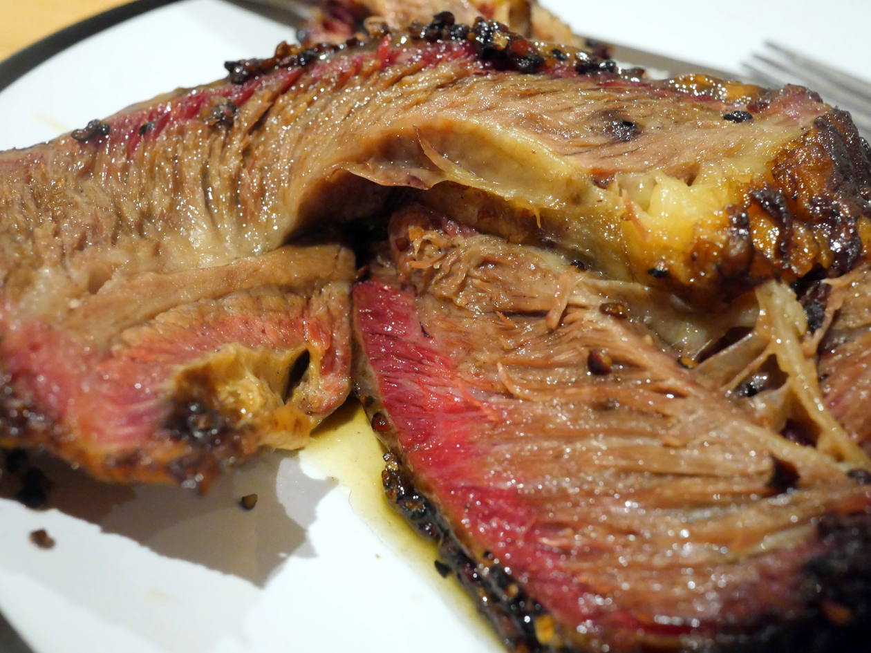Although my vac-packed helping of beef short rib arrived already sliced off the bone, with the bones themselves hilariously included in separate bags, that was their most serious flaw. The balance between the peppery bark and the salty, moist flesh underneath was perfectly poised, neither one overpowering the other. Although not as buttery soft as some of the other Jacob’s Ladder ribs in this round-up, they were far from hard with a yielding bite. Each mouthful was succulent thanks to both rendered and extant connective tissue. An impressive debut.
