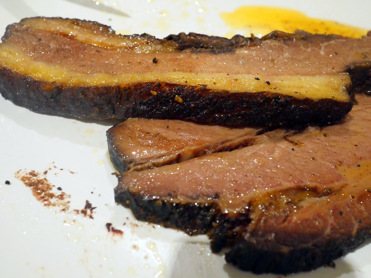 Umami with a lick of saltiness and tender enough that it could be cut with a fork, the beef short rib was an eminently enjoyable hunk of cow. It bore more of a resemblance to a brined or salt-cured style of beef, such as pastrami than the other leading slow-smoked beef short ribs here. While not as luxuriantly sophisticated as the best Jacob’s Ladder ribs here, it was still a consummate charmer on its own terms.