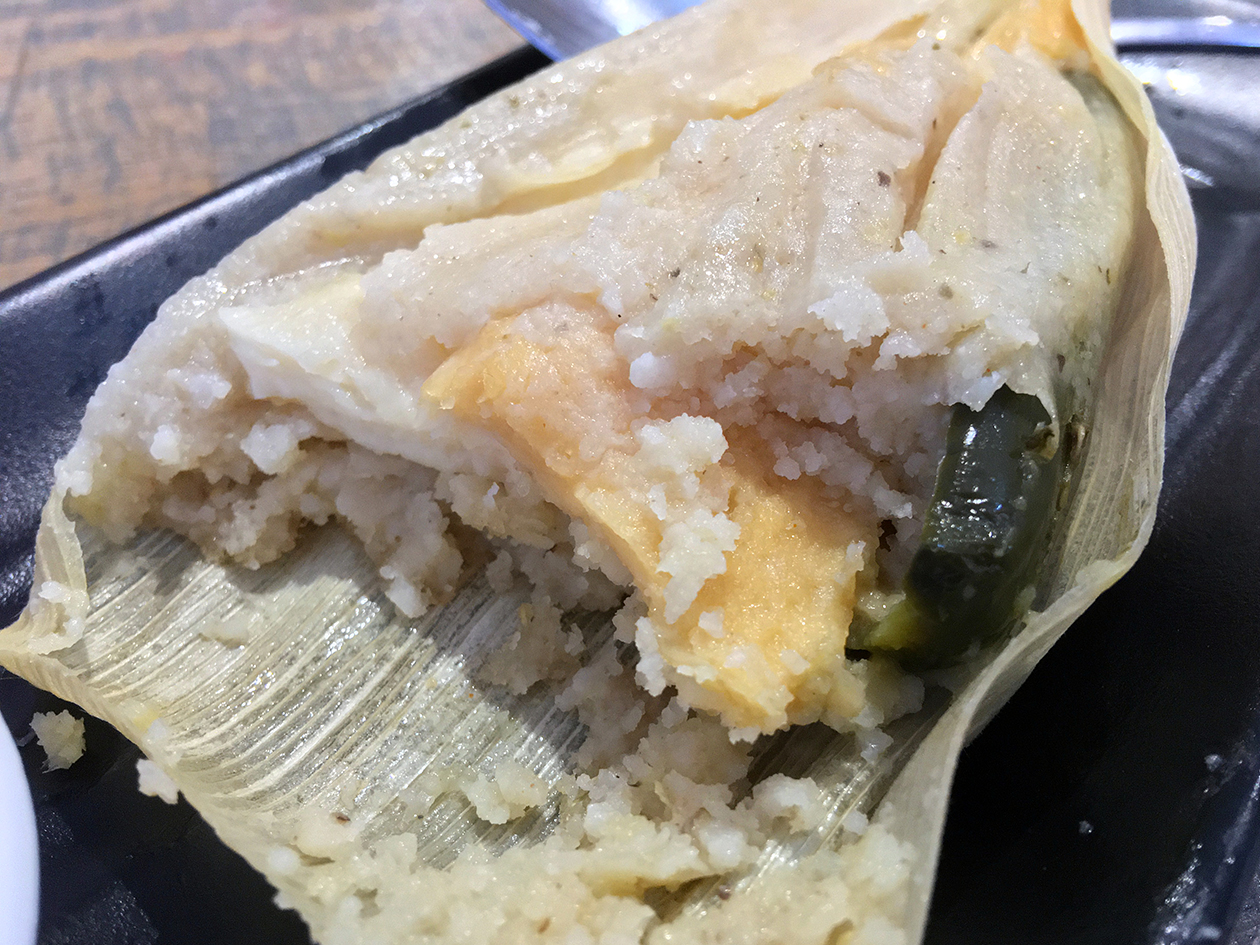 The vegetarian version was far better – a mild chilli pepper and a log of cheese, possibly Oaxacan in style, combining the solid heft of halloumi with the creaminess of mozzarella. With or without the sauce, it made for a respectably satisfying tamal.