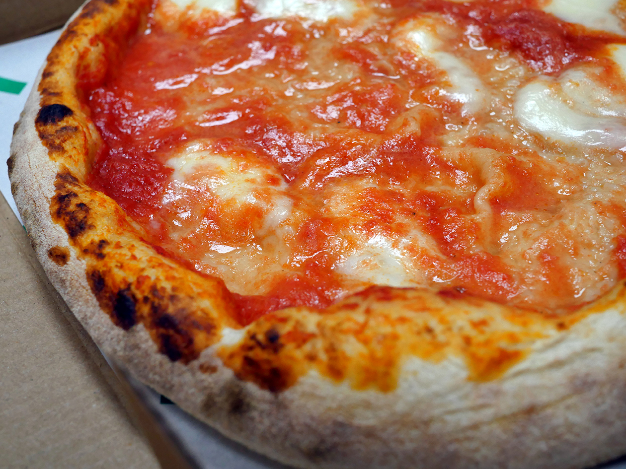 Smooth, slippery and hefty mozzarella was let down by a lone basil leaf that was only reasonably fragrant and tomatoes that had only a transient acidity. The biggest letdown of all was the base. Although thin and reasonably puffy, it was a bit too bready and not especially soft or elastic.