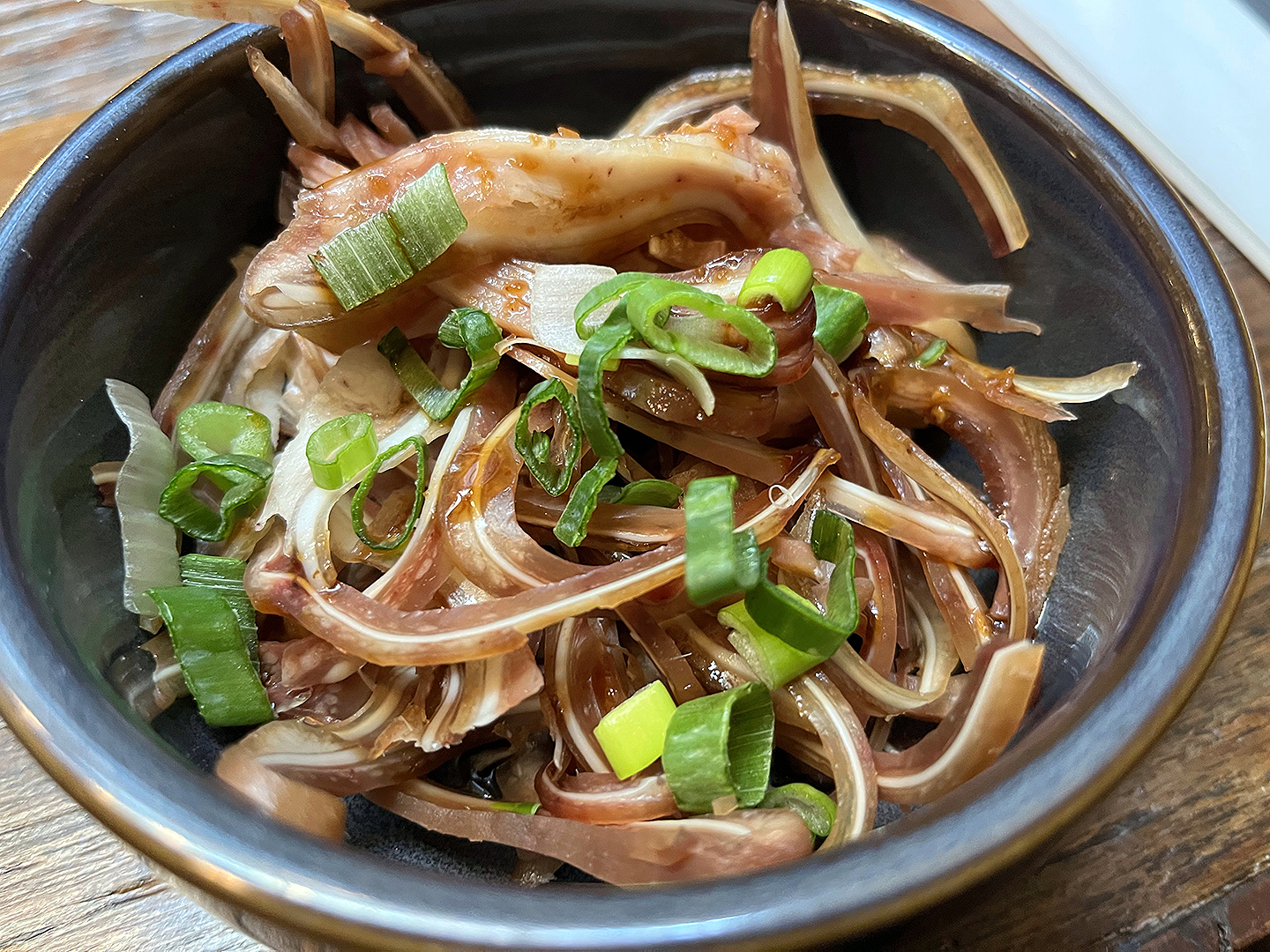 Firm and bouncy pig ears came in a vinegary reduction which made for a tangy, toothsome treat.