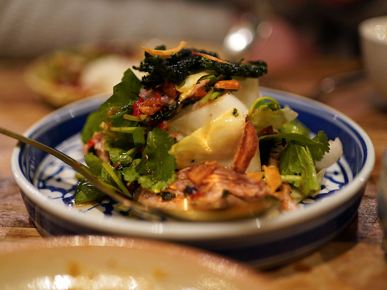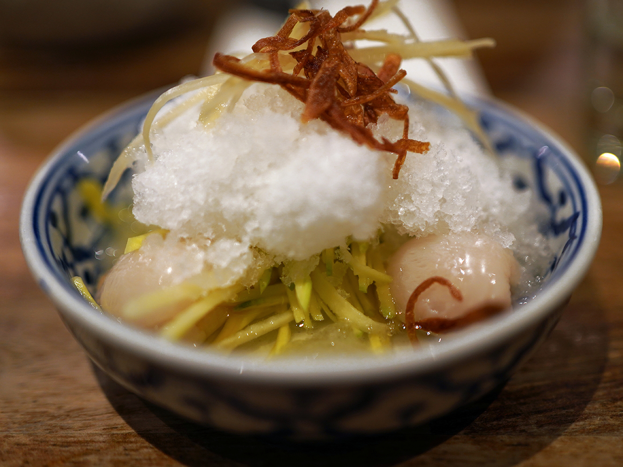 Som chun was a bit like a cross between a slushie and a fruit salad. Fine-grained crushed ice came sweetened with a basic sugar syrup. Crunchy shallots would’ve added more character, but there wasn’t enough of them, with that task resting on the plump, squishy lychees instead. Young green mango was there for crispness rather than sweetness. While refreshing and pleasant enough, it didn’t quite work as a singular whole, needing something to bind all the disparate elements together.
